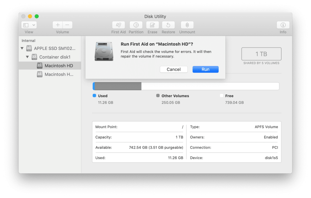 This has a First Aid option to run and automatically fix issues like disk errors, file system errors, etc. I run this once every few months or whenever my Mac isn’t running well (after restarting).