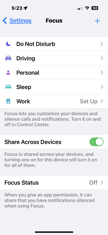 iPhone’s notifications, ringtones, text tones, etc. have become much more complicated as the iOS versions have progressed and matured, to the point where now it can take a lot of work to set the various sounds your iPhone makes the way you want them. In the iPhone settings menu, there are three main Settins menu sections to go to control these: Sounds & Haptics, Focus, and Notifications. The good news is that while it will take a bit of time to set these all up, it’s a one-time effort, and spending the time up-front will make your iPhone much less annoying! 😁