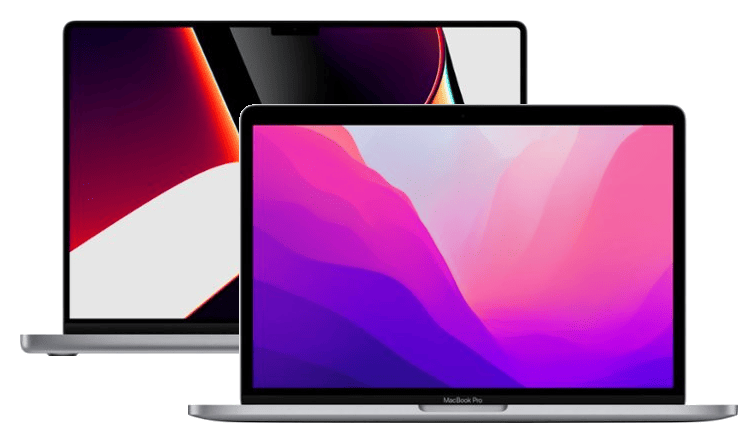 - Processor/chip: The Macbook Air 2020 models with the M1 chip are still being sold, alongside the 2022 models with the M2 chip. The Macbook Pro 13″ is the 2022 model and comes with the M2 Pro chip, while the 14″ and 16″ are 2021 models that come with the M1 (Pro or Max) chip. There is also an M1 Ultra upgrade option available.