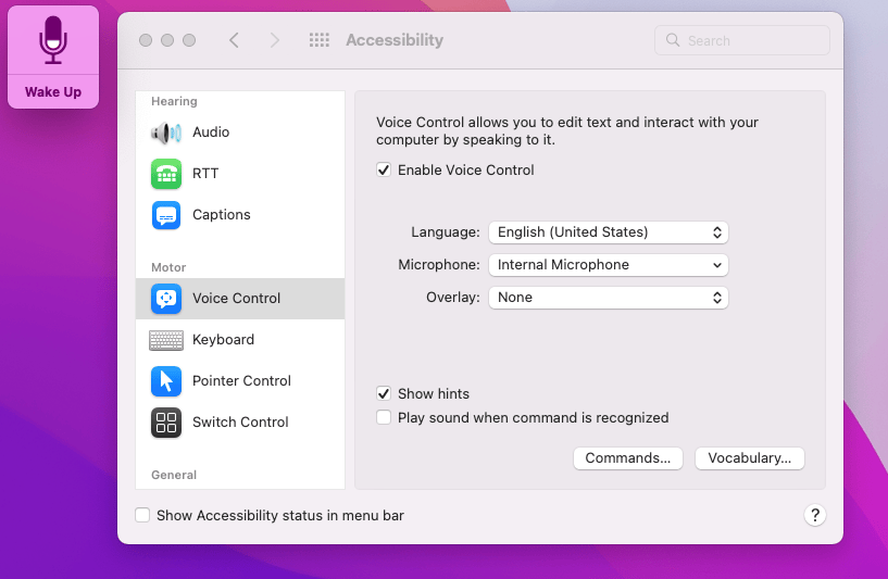 For my Mac readers, you can enable on-device speech recognition by opening System Preferences > Accessibility, and checking the “Enable Voice Control”. That will put a small icon on your desktop which you can move around to wherever you like.