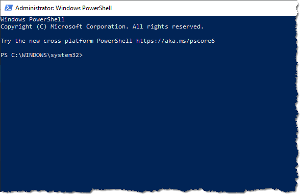Next, you’ll want to open the Windows Command Prompt (if you’re using an older version of Windows 10) or Powershell (if using a newer version). Right-click the Windows 10 start button and choose the item that shows up (choose the one that includes (Admin) in the name). An old DOS-style window will appear (black background for Command Prompt, blue background for Powershell). Then: